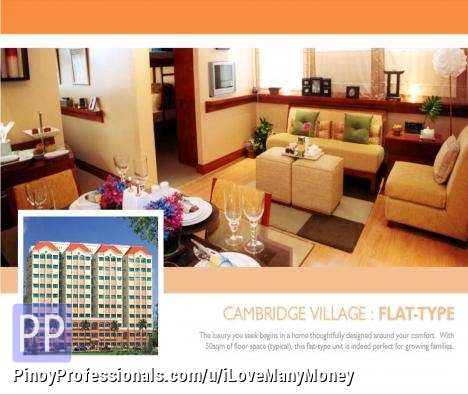Latest Condominium properties for sale in east bank road Pasig area – Cambridge Village residential Condo (pre-selling/under construction/Ready for occupancy) offers 5,500 pesos monthly amortization, we offer you affordable pre-selling and ready for occupancy condominium for sale in Pasig city area. (price, payment terms, location, floor layout and update available). The project is close to ortigas CBD, Cubao araneta center, and Fort Bonifacio via C-5 road. You can choose from Studio, 1 bedroom loft type, and 2 bedroom units for as low as Php 1.4 Million Pesos.