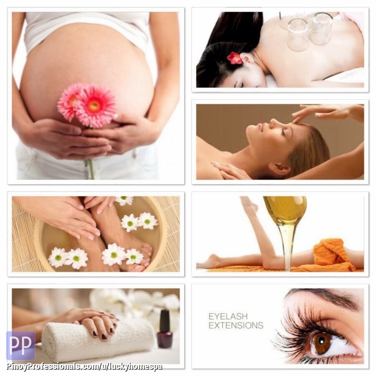 Good day! Hi, this is Lucky Home Spa you're 24/7 Home Service Spa List or services: Swedish, shiatsu, Thai, combi, foot, back massage -- 275, electric massage -- 310, traditional massage -- 450, ventosa massage -- 500, pre natal / post natal massage -- 299, Body Scrub yogurt -- 525, Manicure Pedicure ( cleaning only ) -- 100, Manicure/ Pedicure ( with polish ORLY brand ) -- 160, Lucky Aromatherapy Lavender Hand Spa --275, Lucky Aromatherapy Lavender Foot Spa -- 325, Lucky Aromatherapy Lavender Foot Spa package ( manicure pedicure footspa ) -- 500, eyelash extensions 450, waxing eyebrow 90, upper lip and lower 100, face 120, underarm 120, arm 210, chest 210, back 210, bikini 210, Brazilian 400, half leg 250, full legs 400 full body 1300. Please reserve your appointment at this number ( globe ) 0916-6821026 ( pldt ) 5220554