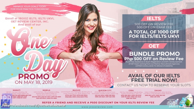 Enroll at JROOZ IELTS, IELTS UKVI, OET REVIEW CENTER INC. and avail of our
