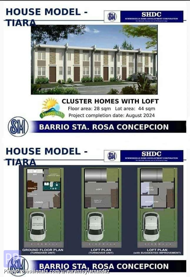 PINAKAMURANG LOFT TYPE UNIT ALONG HIGHWAY RESERVE NA HABANG AVAILABLE PA LIMITED UNITS ONLY Brgy Talaga Capas Tarlac TIARA HOUSE MODEL (Cluster Homes with Loft) Lot Area 44 sqm
