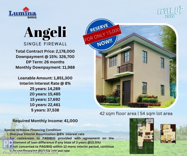 Rizal. It offers economic houses like Angelique Duplex, Angeli Single Firewall, Armina Single Firewall and Athena Single Firewall. It is less than 3 minutes or 1.3 kilometers